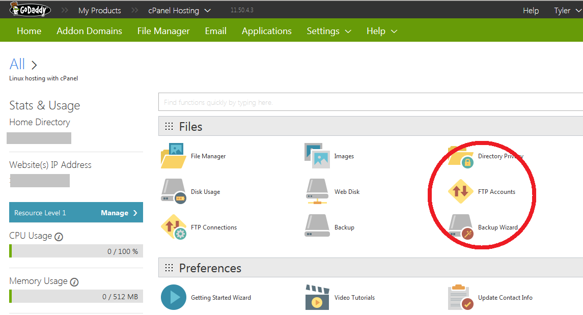 - 3. If you don't already have an FTP account at your hosting provider, then create one. If your host uses cPanel, then find the icon that says "FTP Accounts" (most hosting providers use cPanel: Hostgator, Godaddy, BlueHost : all of them use cPanel)