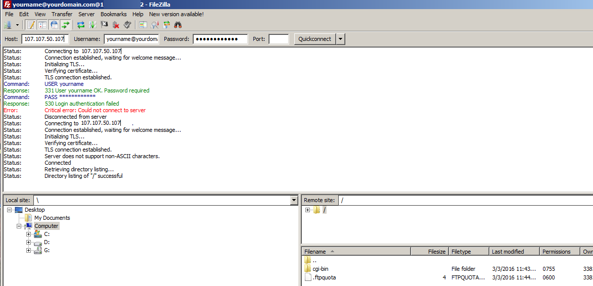 - The username should be yourname@yourdomain.com