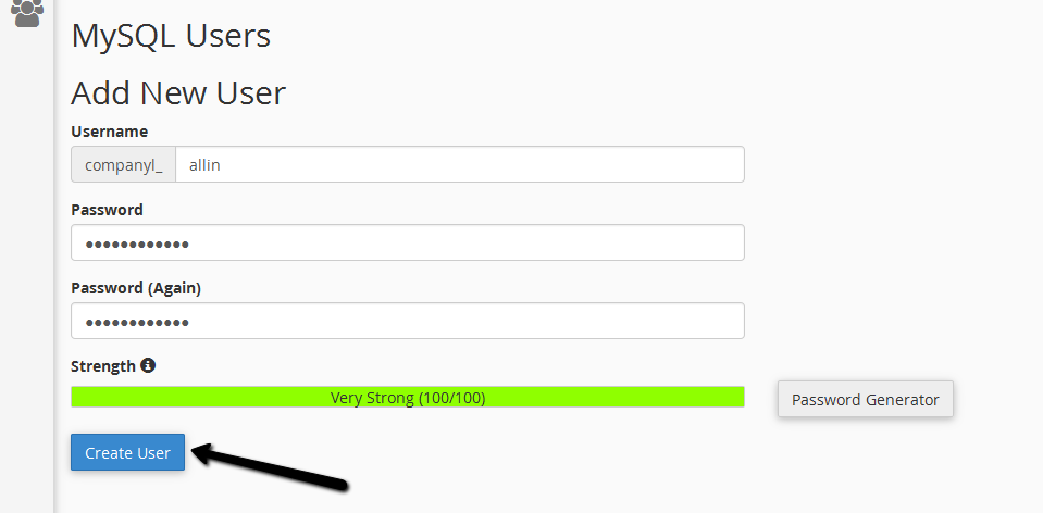 - 11. Add this user to the database. Give your new user access to all privileges.